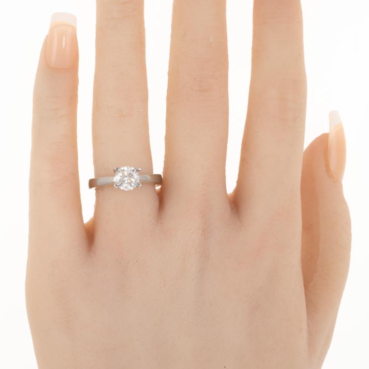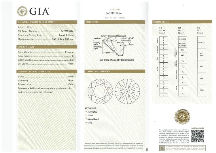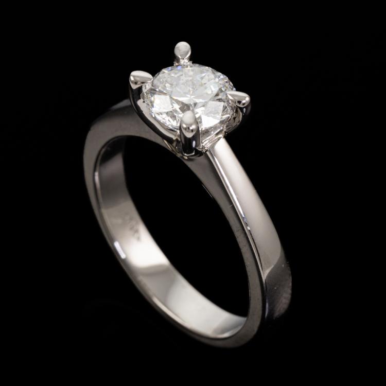 Diamond ring with round brilliant cut Natural Diamond of 1.01ct (with GIA Report graded as G SI2 #6492033496). Platinum - 950. Ring size K3/4. Band width 3.2mm - 2.2mm. Weight: 7.8g. With Valuation Certificate #419048. (New)