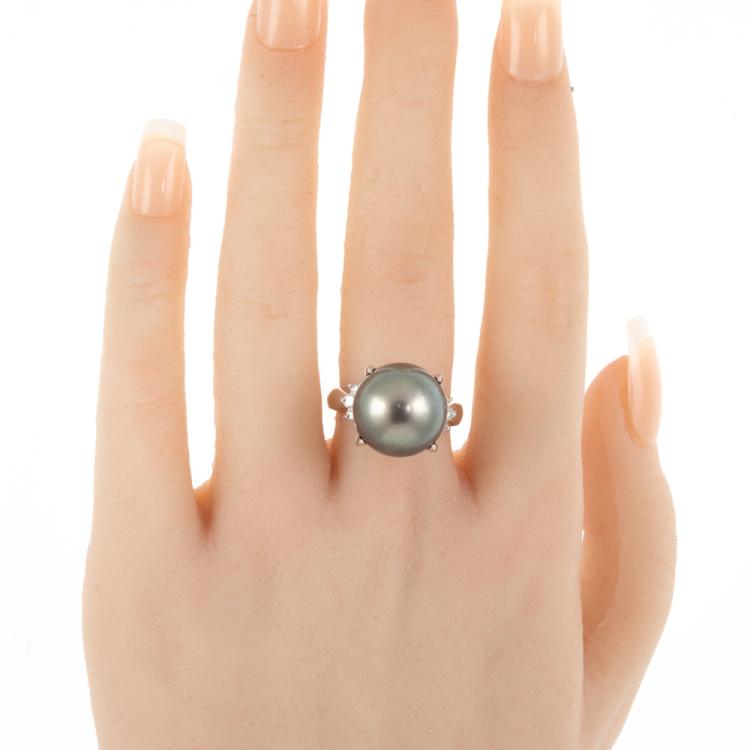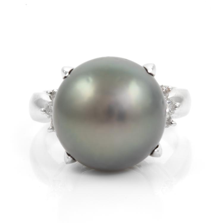 14.2mm Tahitian Pearl Diamond Ring