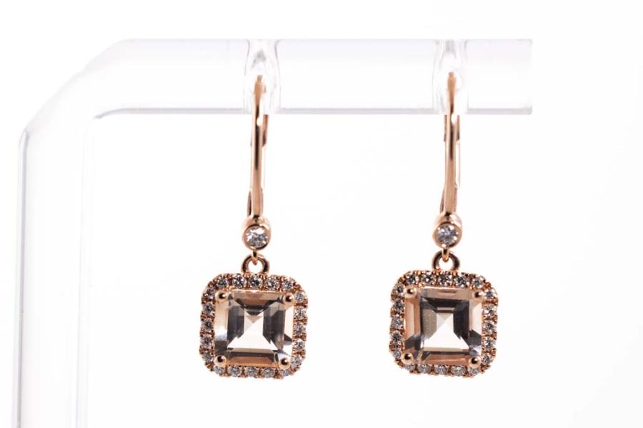 Morganite and Diamond earrings with square shape Natural Morganite totalling 1.87ct and Natural Diamonds totalling 0.26cts (Estimated grading: H SI). 14ct rose gold. Weight: 2.3g. (New)