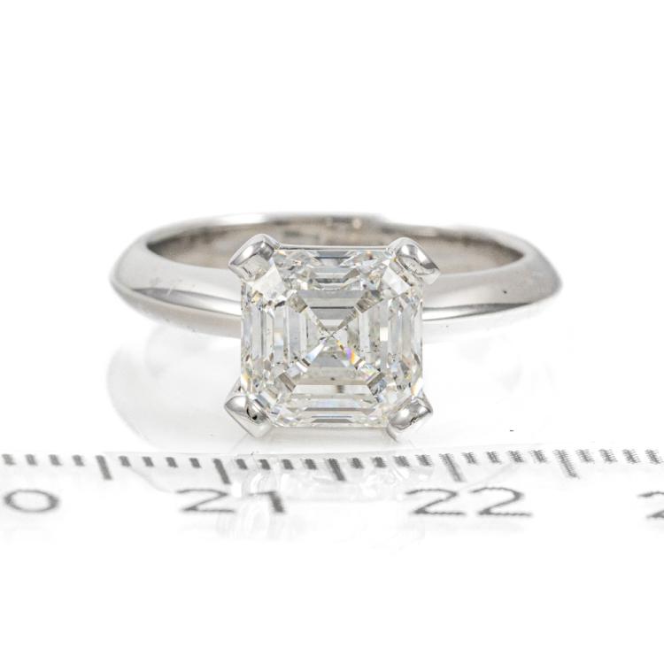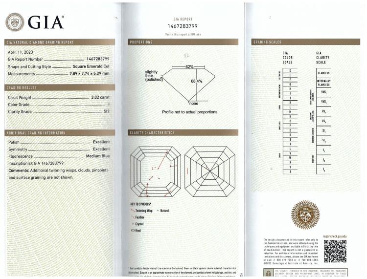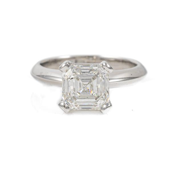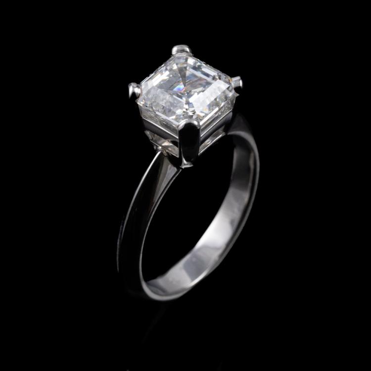 Diamond solitaire ring with square emerald cut Natural Diamond of 3.02ct (with GIA Report graded as I SI2 #1467283799). Platinum. Ring size: L3/4 . Band width: 3mm. Weight: 8.5g. (New)