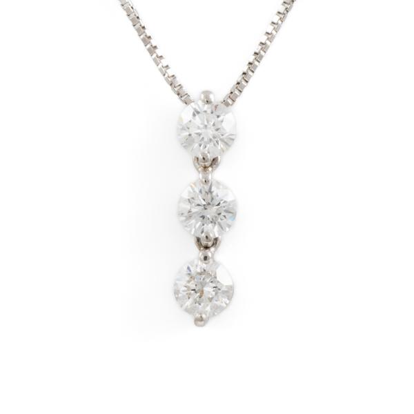 Diamond drop pendant with 3 round Diamonds totalling 0.99ct (Estimated grading: H SI). Platinum-900 with 44cm platinum-850 adjustable chain. Weight: 3.9g. (Pre-owned)