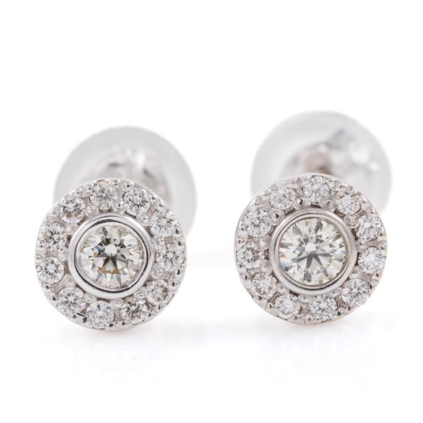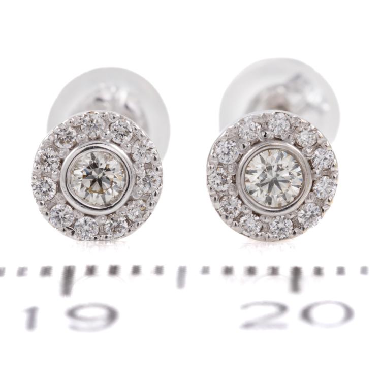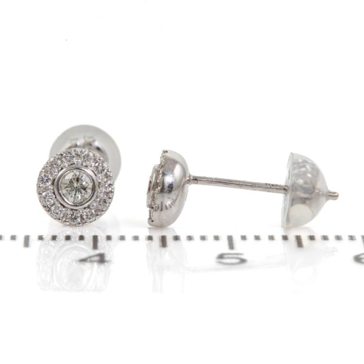 Diamond earrings with round Natural Diamonds totalling 0.22cts. Diameter of earring; 5.85mm. 14ct white gold. Weight: 1.5g. (Pre-owned)