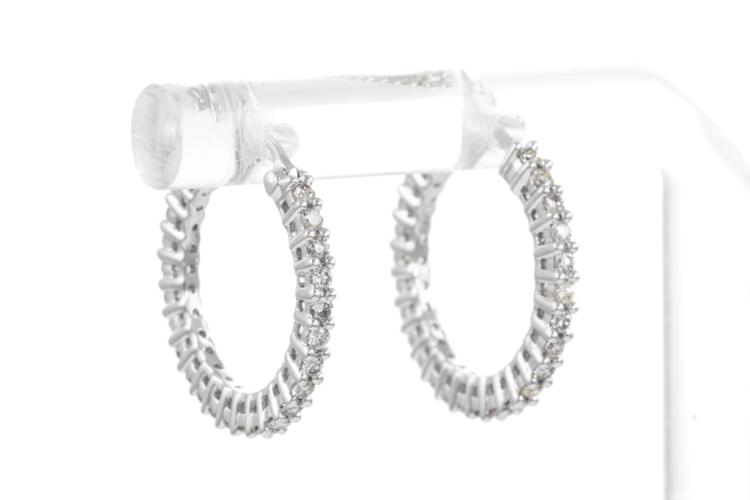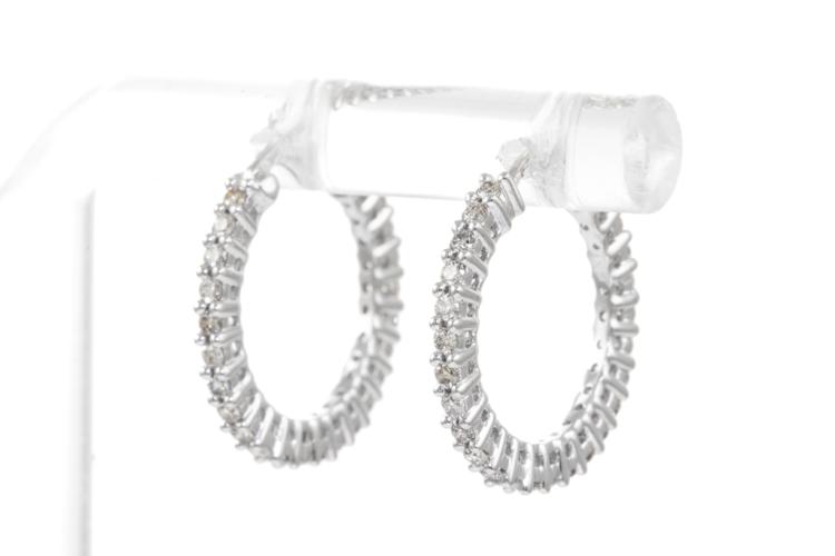 Diamond Hoop earrings with 50 round Diamonds totalling 0.49ct (Estimated grading: H SI). 14ct white gold. Width: 17.5mm. Weight: 2.5g. (New)