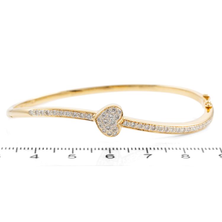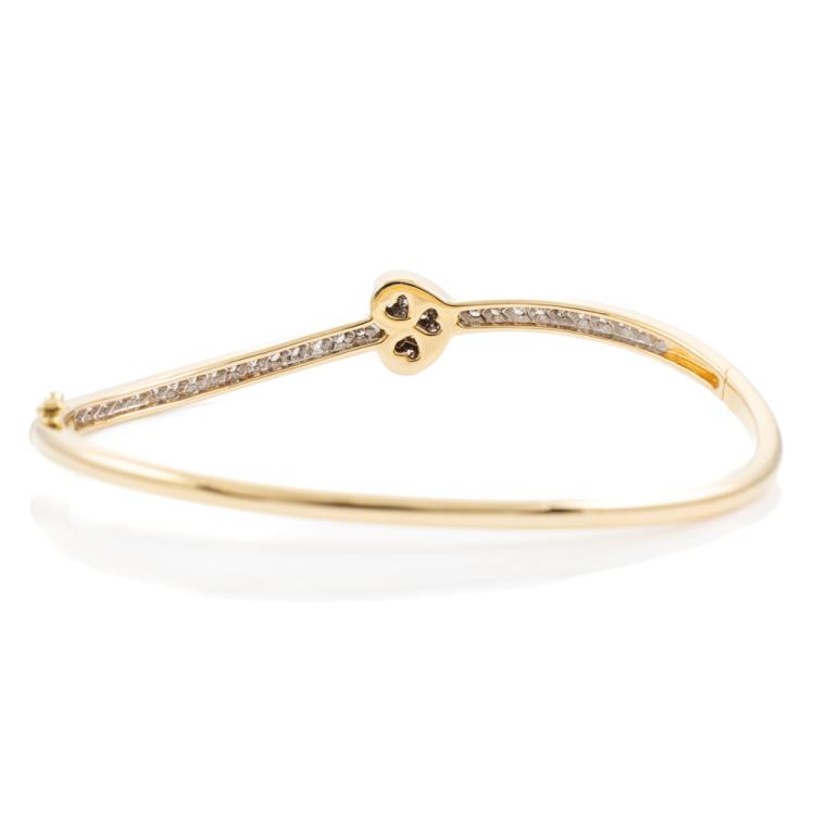 Diamond oval bangle with round Natural Diamonds totalling 0.54ct (Estimated grading: H-I SI). 18ct yellow gold. Circumference: 16.5cm. Width: 2.6mm. Weight: 13.9g. (Pre-owned)