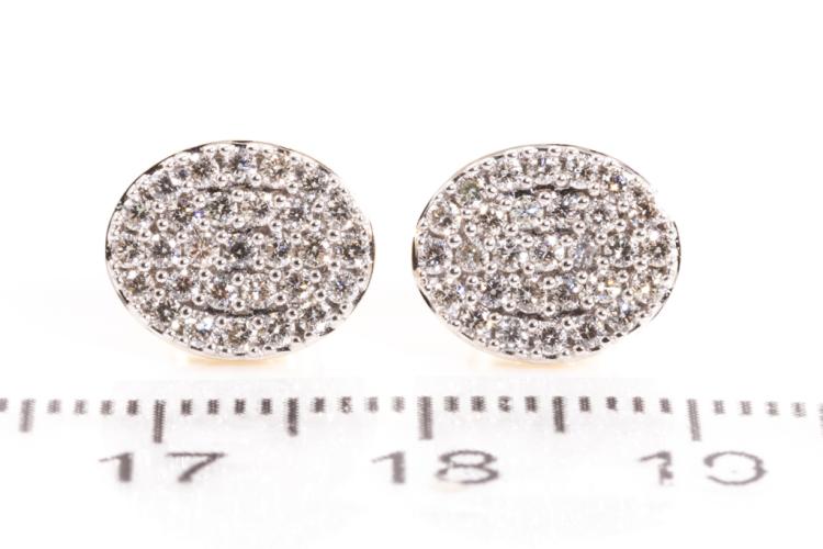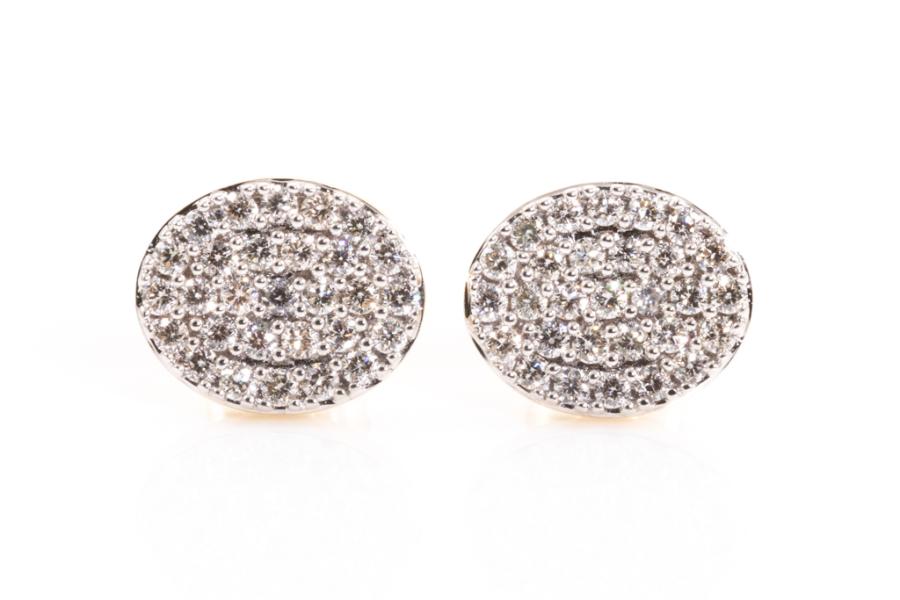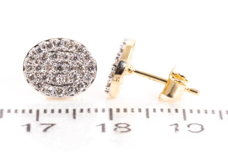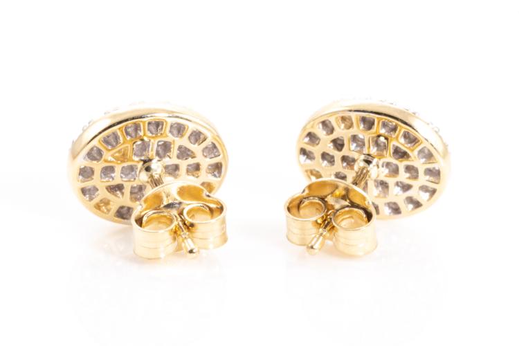 Diamond earrings with 58 round diamonds totalling 0.55ct. (Estimated grading: H SI). 14ct yellow gold. Weight: 2.7g. (New)^