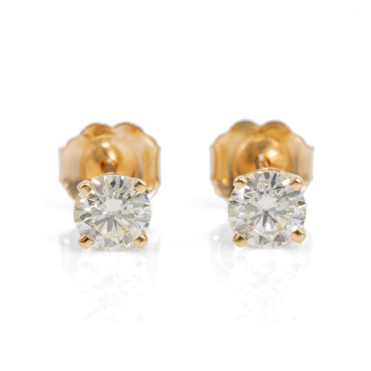 Diamond stud earrings with 2 round Diamonds totalling 0.60cts (Estimated grading: L-M SI). 18ct yellow gold. Weight: 0.9g. (New)