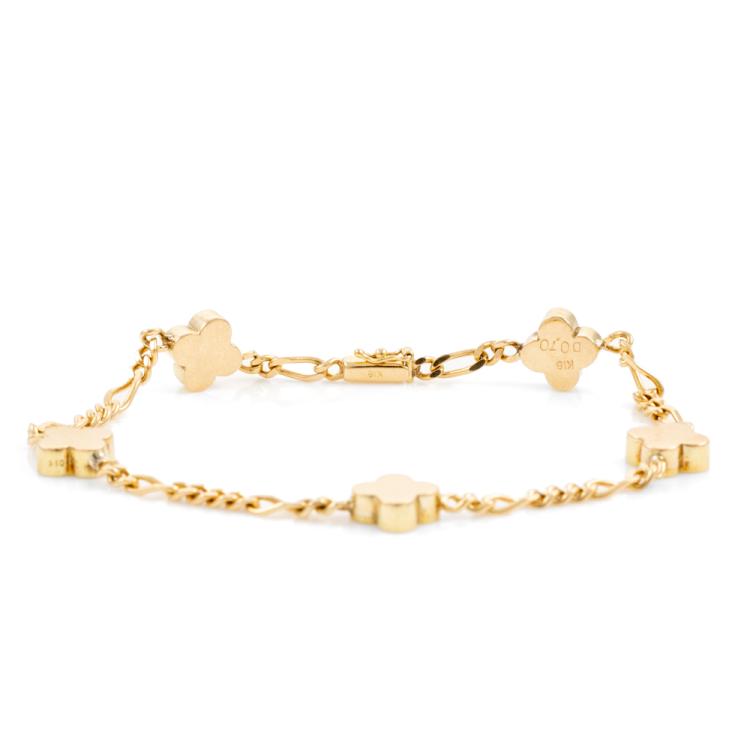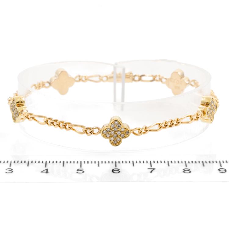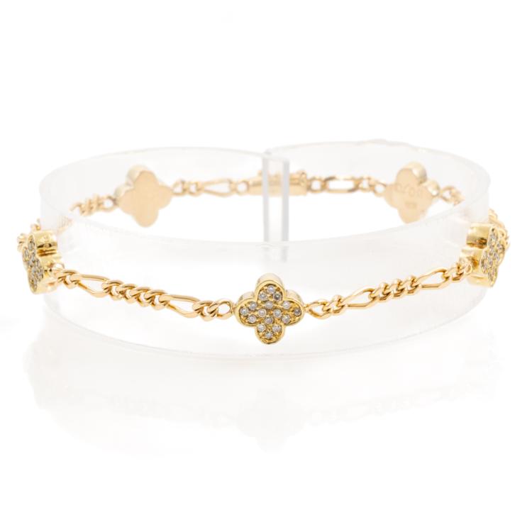 Clover design Diamond bracelet with round Natural Diamonds totalling 0.70cts (Estimated grading: H-I SI). 18ct yellow gold. Length: 18cm. Weight: 10g. (Pre-owned)