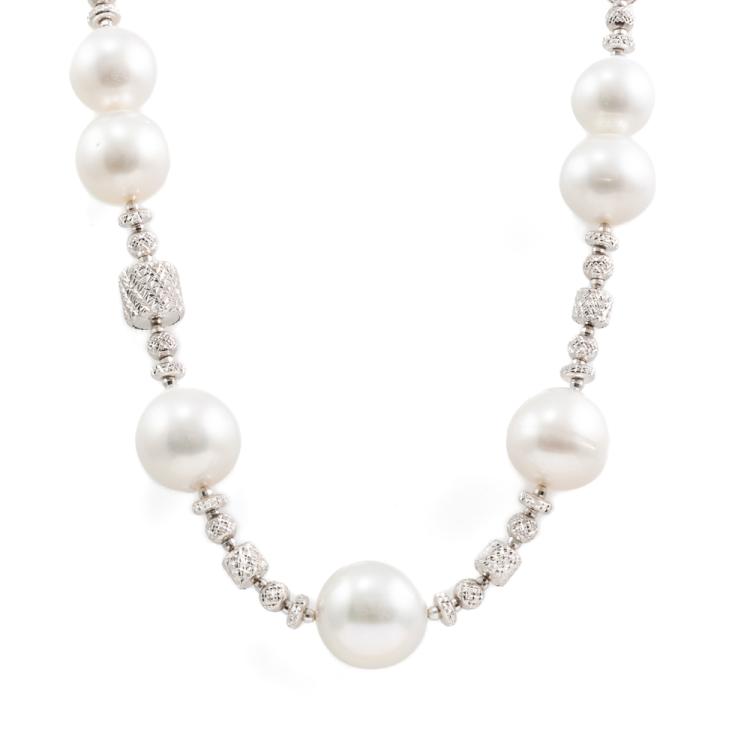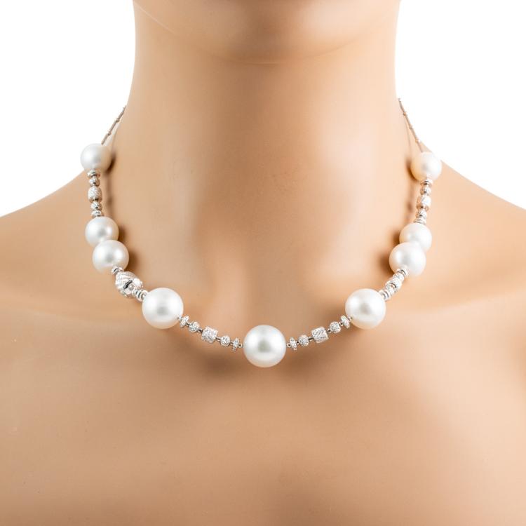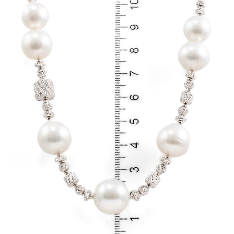 Pearl necklace with 9 South Sea Pearl of 14.1mm - 10.9mm. 18ct white gold. Length: 44.5cm. Weight: 33.9g. (Pre-owned)