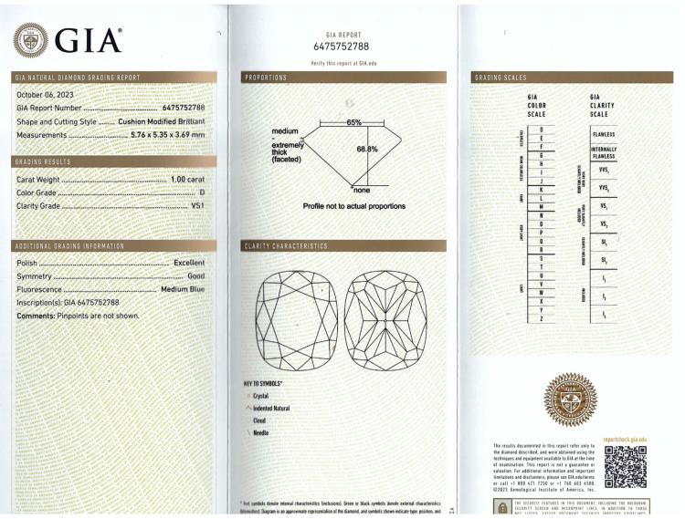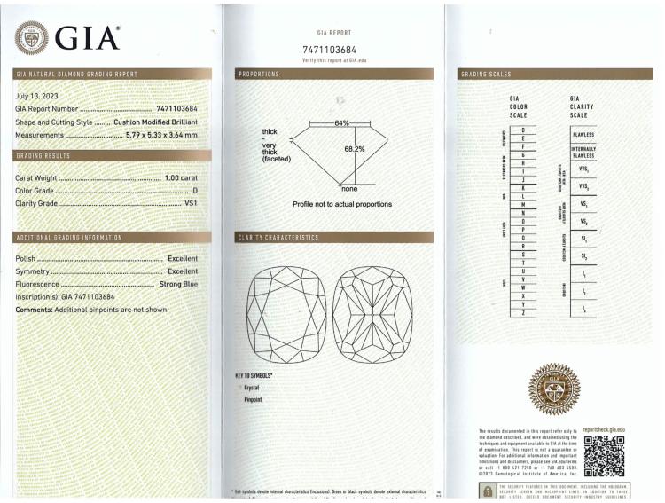 A loose pair of cushion cut Natural Diamonds totalling 2.00ct (both with GIA reports graded as D VS1# 7471103684, 6475752788). (New)