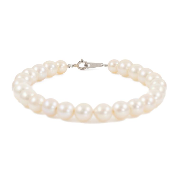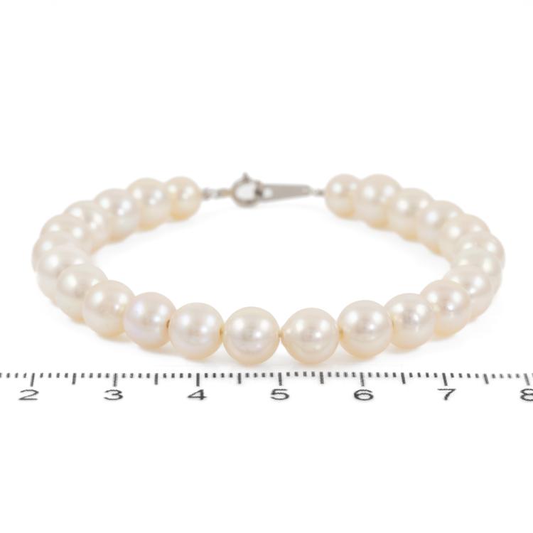 Pearl bracelet with 24 Akoya Pearls of 5.9mm - 7.1mm. Platinum 850 spring ring clasp. Length: 18.5cm. Weight: 12.2g. (Pre-owned)
