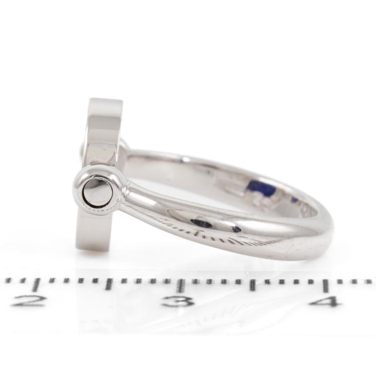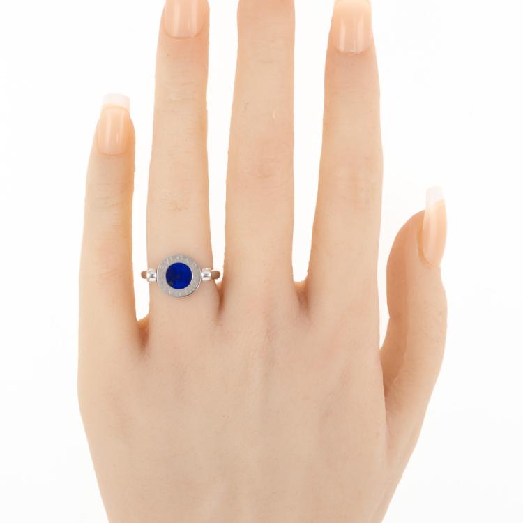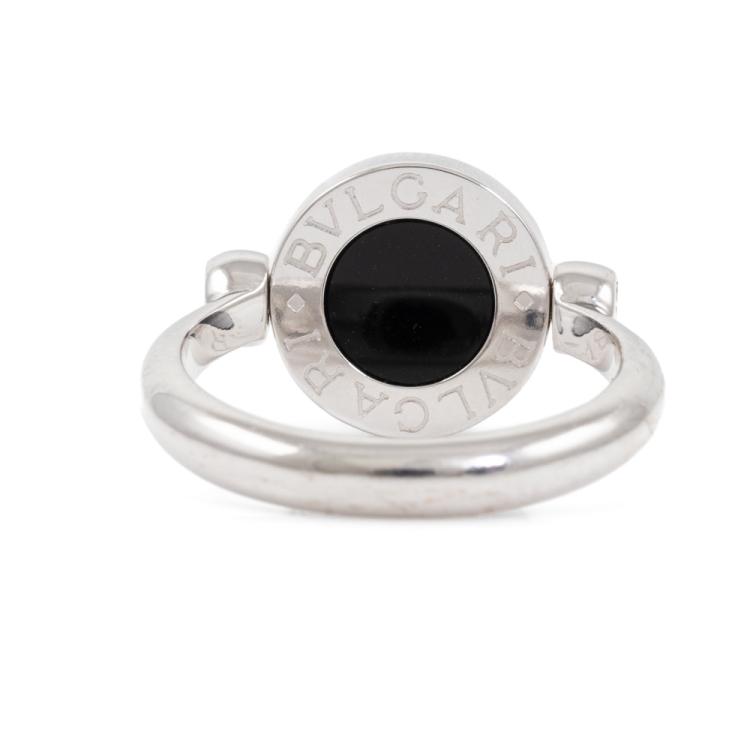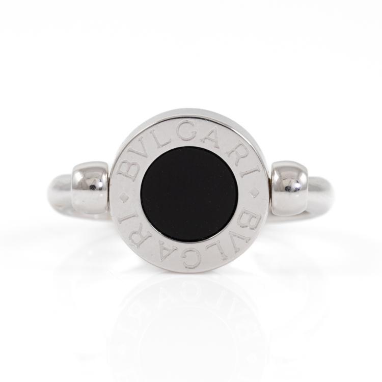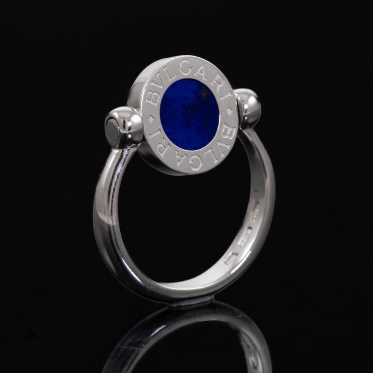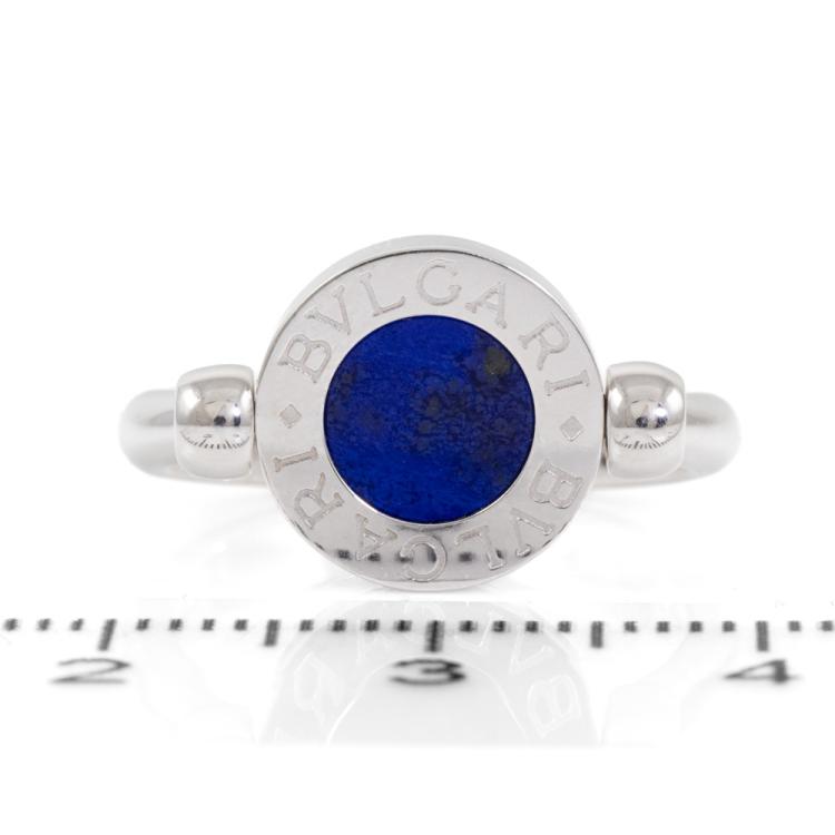 Bvlgari Bvlgari flip ring with Lapis Lazuli and Onyx. Motif size: 11mm. 18ct white gold. Bvlgari stamped size 50, actual size J - ring resizing is not recommended. Made in Italy. Weight: 5.7g. With Bvlgari box. (Pre-owned)