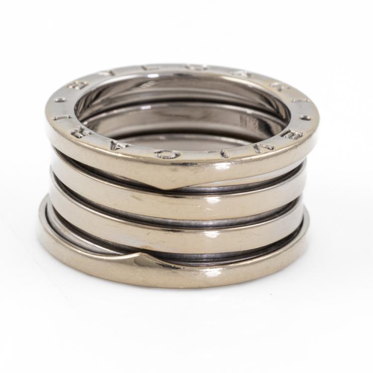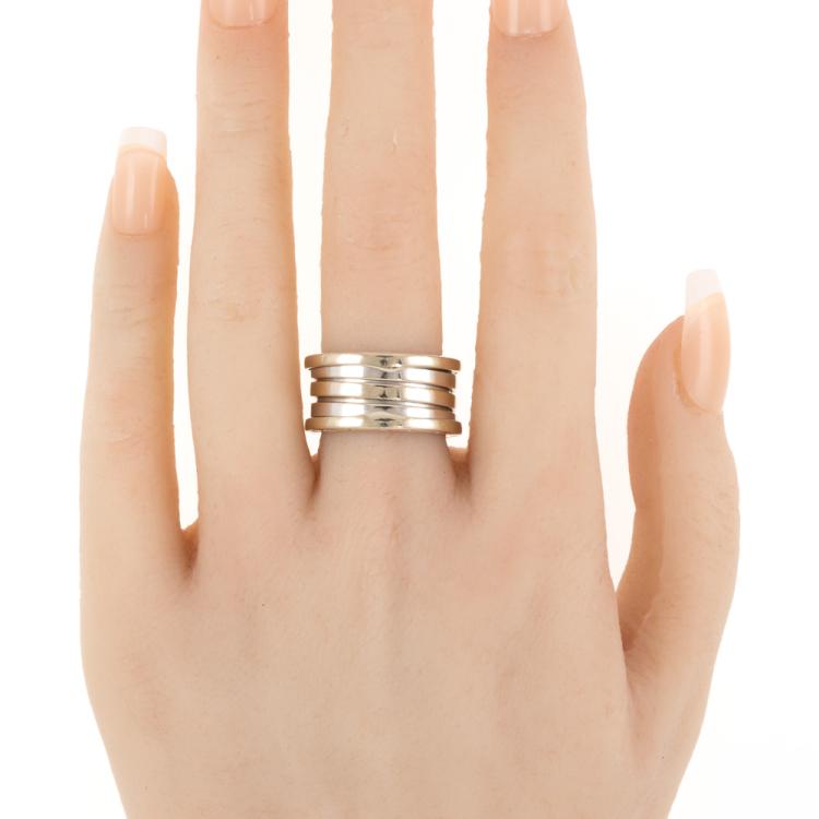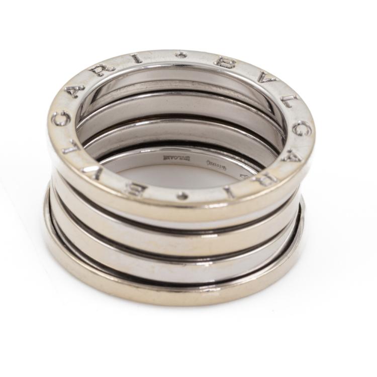 Bvlgari B.Zero1 four-band ring. 18ct white gold. Bvlgari stamped size 54, actual size M1/2 - ring resizing is not recommend. Band width: 11mm. Made in Italy. Weight: 10.5g. With Bvlgari box. (Pre-owned)