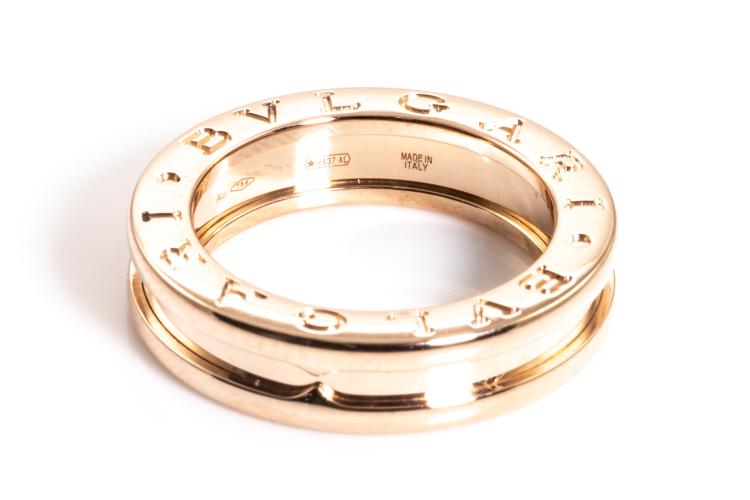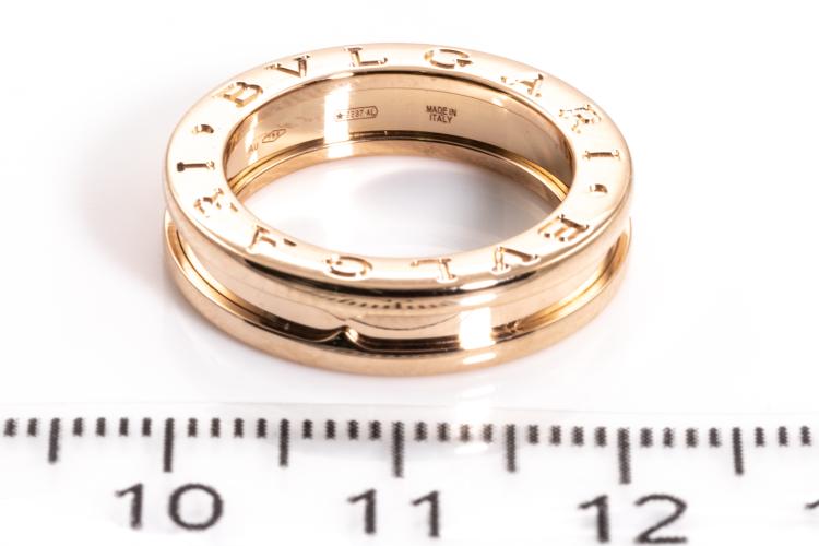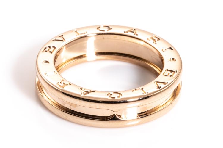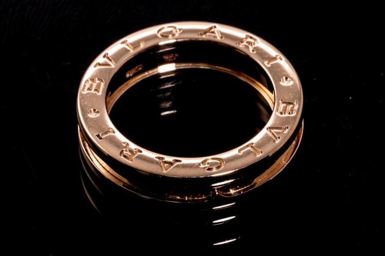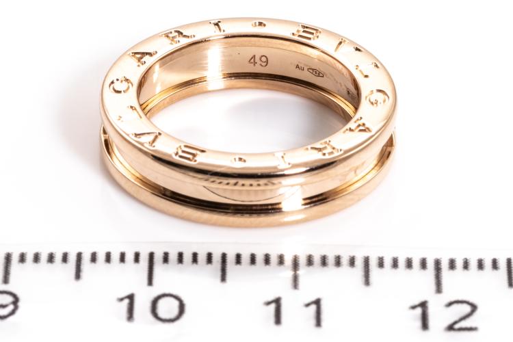 Bvlgari B.Zero1 ring. 18ct rose gold. Bvlgari stamped size 49, rings size J - ring resizing is not recommended. Weight: 7g. Made in Italy. With Bvlgari International Authenticity card dated 22/12/2019 and Bvlgari box. (Pre-owned)