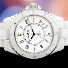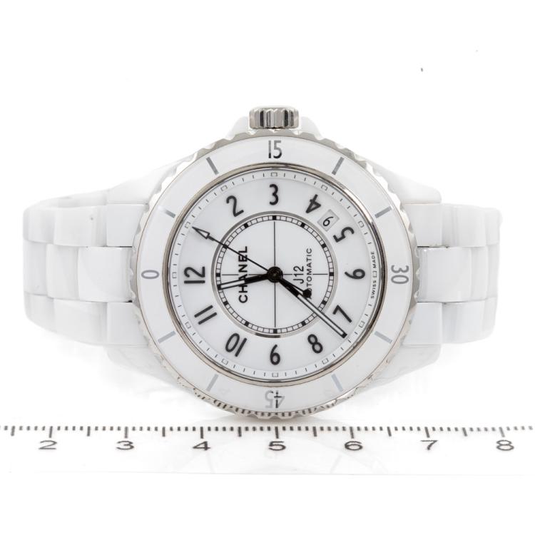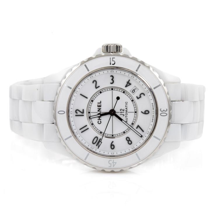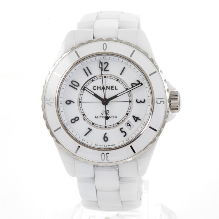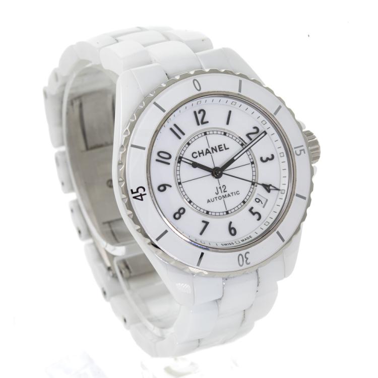 Chanel J12 ceramic and stainless steel automatic watch. White dial, date, case diameter: 38mm, wrist size: 17cm, Swiss made. Ref# H5700. With Chanel White ceramic bracelet and clasp. With Certificate of Authenticity, Chanel International Warranty card dated 18/07/2022 and Chanel box. Balance of 5 year Chanel manufacturer warranty applies. (Pre-owned)