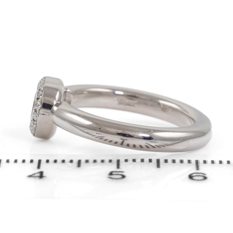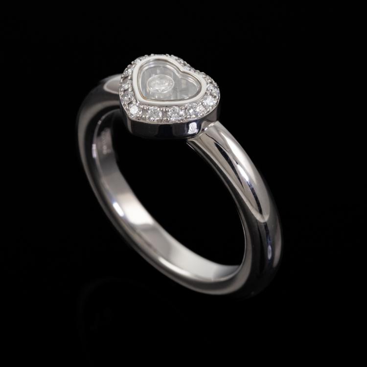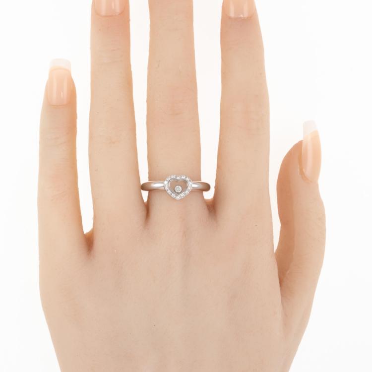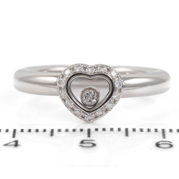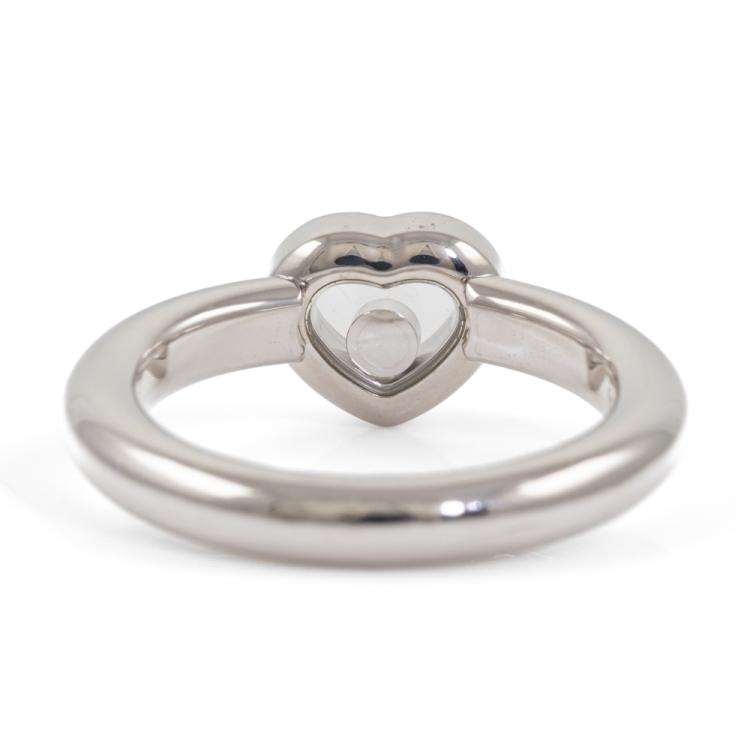 Chopard Happy Diamond Icons Heart ring with round Natural Diamonds totalling approximately 0.14ct (including 1 floating Diamond). 18ct white gold. Ring size M - ring resizing is not recommended. Band width: 3.2mm. Weight: 8.3g. (Pre-owned)