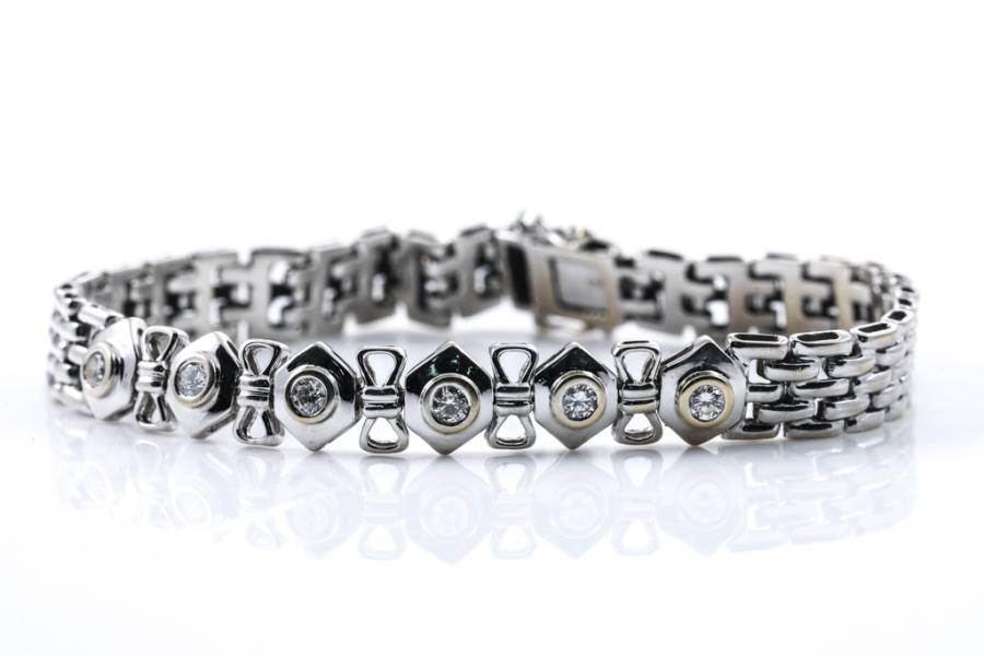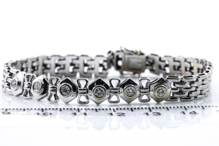 Diamond bracelet with round Diamonds totalling approximately 0.54ct (Estimated grading: H SI). 18ct white gold. Length: 18cm. Weight: 17.5g. (Pre-owned)