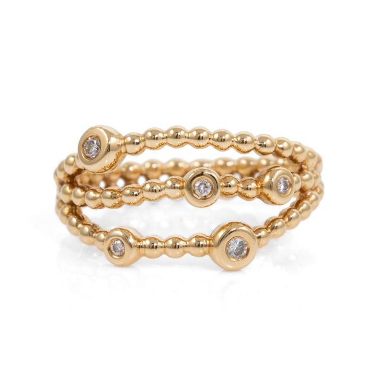 Pandora three row Bubble ring with 5 round Natural Diamonds totalling approximately 0.08cts. 14ct yellow gold. Ring size N 1/2 - ring resizing is not recommended. Band width: 3.5mm. Weight: 4.7g. (Pre-owned)