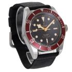 Tudor Black Bay stainless steel automatic mens watch. Black dial, case diameter: 41mm, wrist size: 22cm, Swiss made. Ref# 79220R. With Unbranded black textile strap and buckle. With Certificate of Authenticity. 3 month FSA warranty. (Pre-owned)