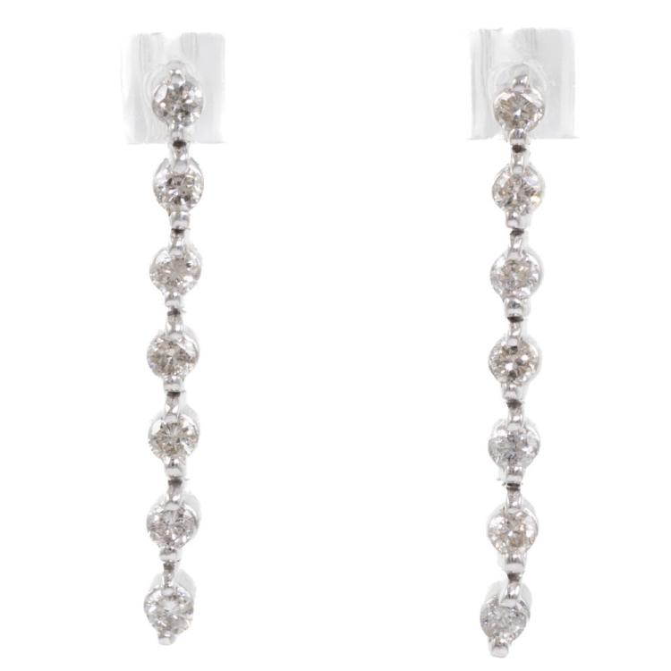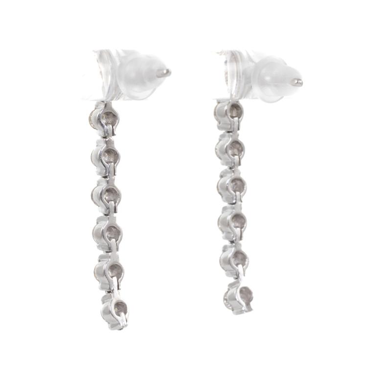 Diamond drop earrings with 14 round natural Diamonds totalling approximately 0.45cts (Estimated grading: J-K SI-P1). Platinum 850 (XRF tested, not stamped) with silicon backs. Length: 2.4cm. Weight: 2.8g. (As New)