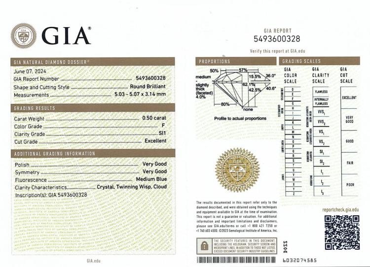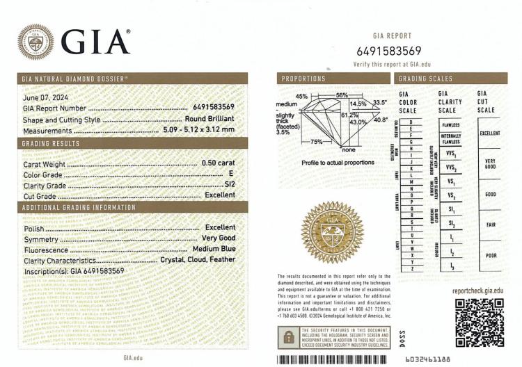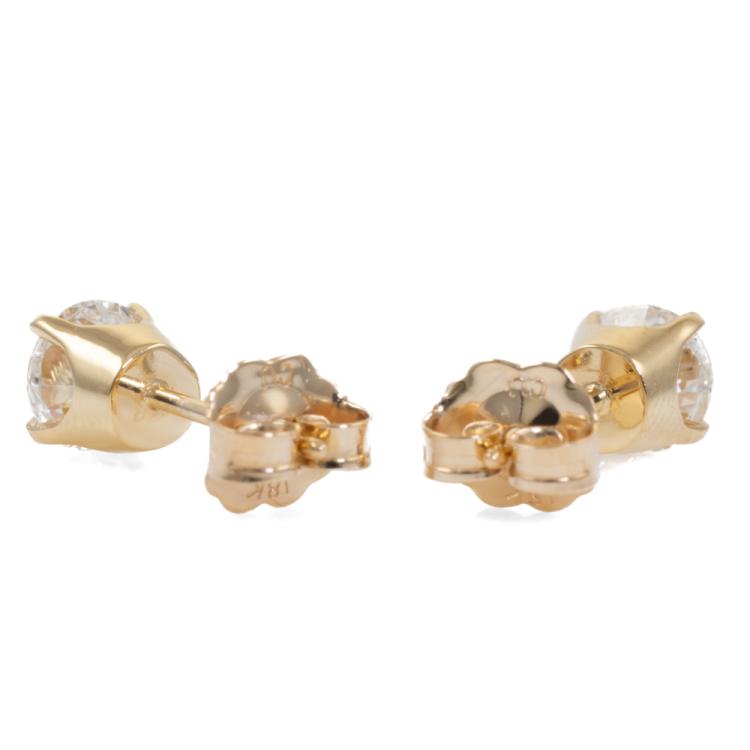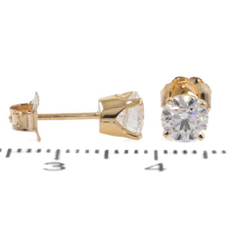 Diamond stud earrings with 2 round brilliant cut natural Diamonds totalling 1.00ct (with GIA Summary Reports graded as E SI2 & F SI1 #6491583569, 5493600328). 18ct yellow gold. Weight: 1.2g. (New)