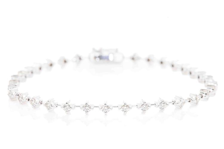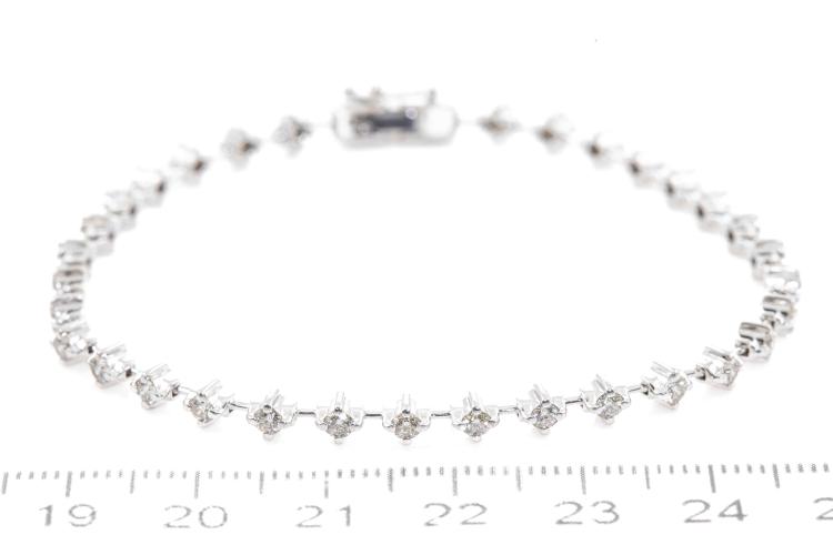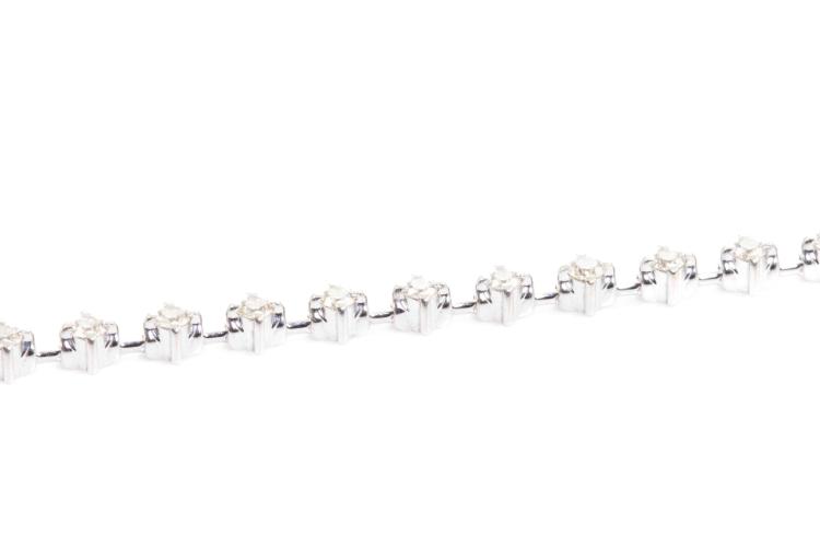 Diamond bracelet with round natural Diamonds totalling 1.51ct (Estimated grading: K-L SI). 18ct white gold. Length: 18cm. Weight: 9.0g. (Pre-owned)