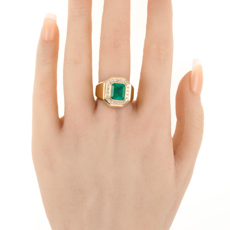 2.12ct Emerald and Diamond Mens Ring