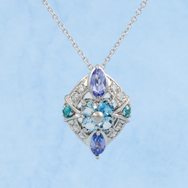Aquamarine, Tanzanite, Tourmaline Pendant