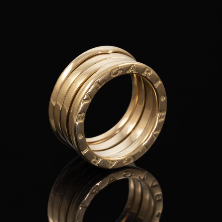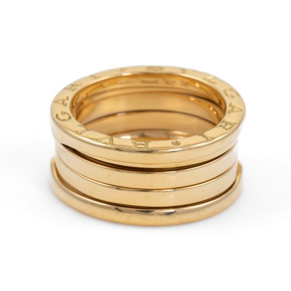 Bvlgari B.Zero1 four band ring. 18ct yellow gold. Bvlgari stamped size 51, actual size K1/2 - ring resizing is not recommend. Band width: 10mm. Made in Italy. Weight: 9.5g. With Bvlgari box. (Pre-owned)