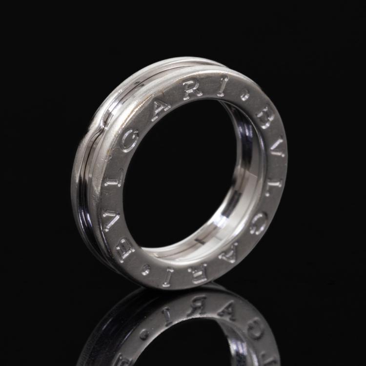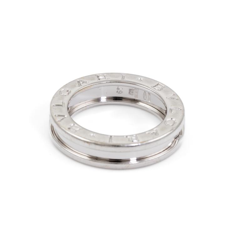 Bvlgari B.Zero1 one band ring. 18ct white gold. Bvlgari stamped size 49, actual size I1/2 - ring resizing is not recommend. Band width: 4.9mm. Made in Italy. Weight: 7.1g. (Pre-owned)