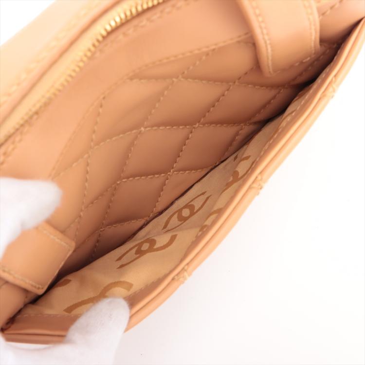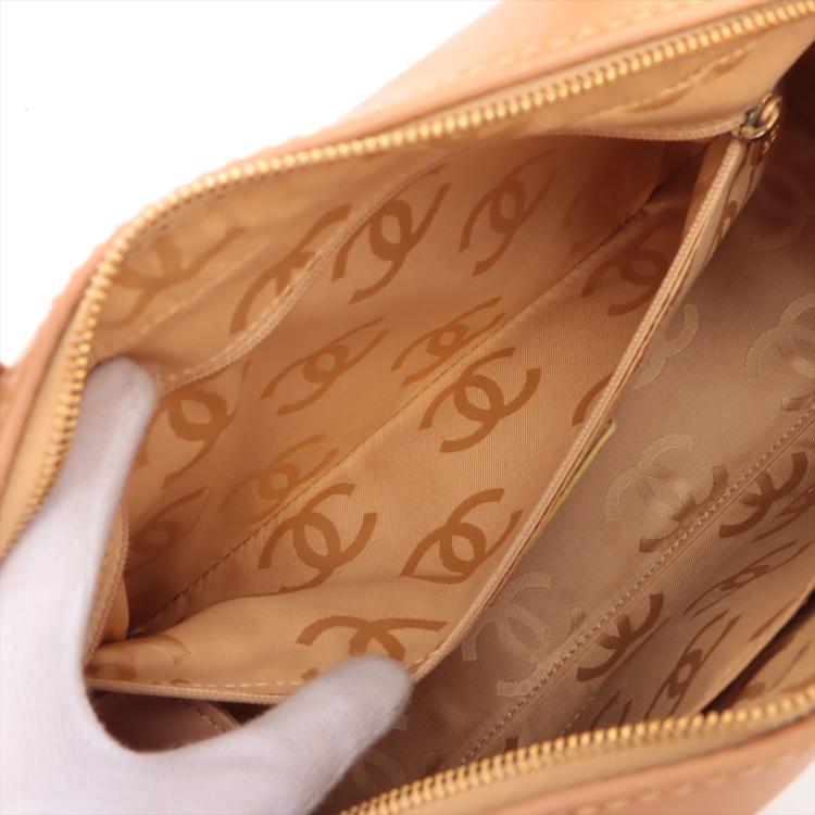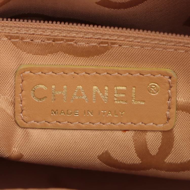Chanel Wild Stitch tote bag in beige lambskin leather. Featuring signature Wild Stitch quilting, interlocking CC logo, an exterior pocket at back, two top handles, and gold metal hardware. The top zipper closure opens to a beige Chanel print interior with a patch pocket, a zipper pocket. Approximate dimensions: 29cm(L) x 19.5cm(H) x 11cm(D), handle drop 16cm. Accompanied by a detachable Chanel internal pouch. With Entrupy Certificate of Authenticity. (Pre-owned)