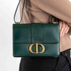 Christian Dior 30 Montaigne shoulder bag in dark green Calfskin leather. Featuring gold-toned hardware, an adjustable shoulder/cross body leather strap, embossed 30 Montaigne signature on the back, and exterior back patch pocket. The flap with antique CD clasp opens to a matching leather interior with a zipper and patch pocket. Approximate dimensions: 24cm(L) x 17cm(H) x 5.5cm(D), double strap drop 18cm. With Entrupy Certificate of Authenticity. (Pre-owned)
