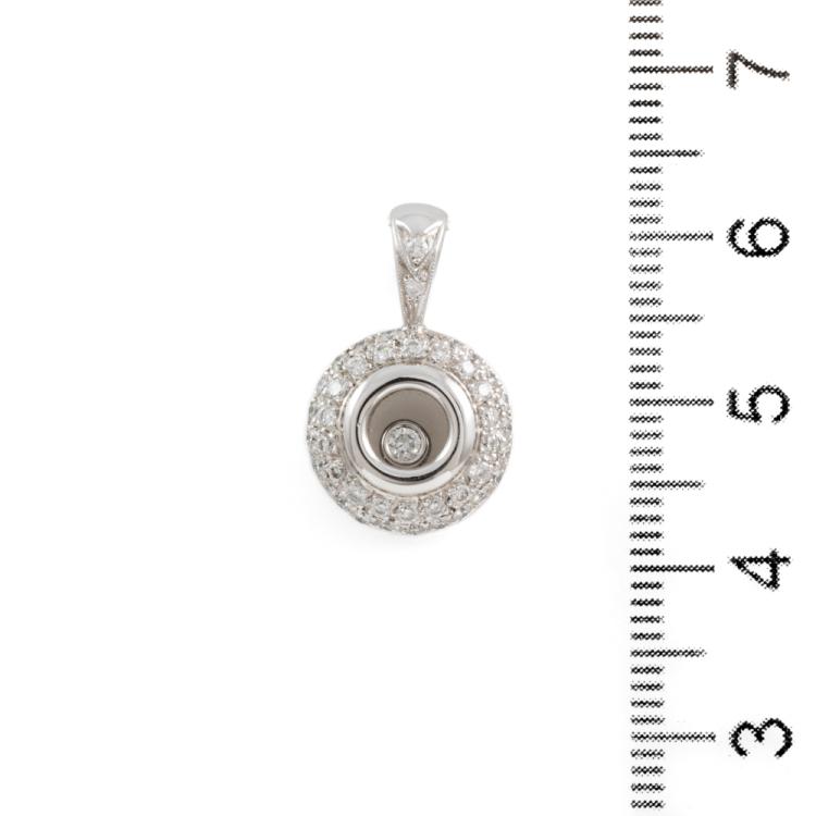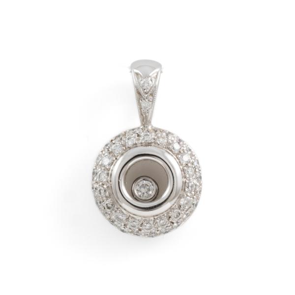 Diamond pendant with a floating round Natural Diamond and remaining round Natural Diamonds totalling 0.45cts (Estimated grading: G-H VS-SI). 18ct white gold. Weight: 4.0g. No chain provided. (As new)