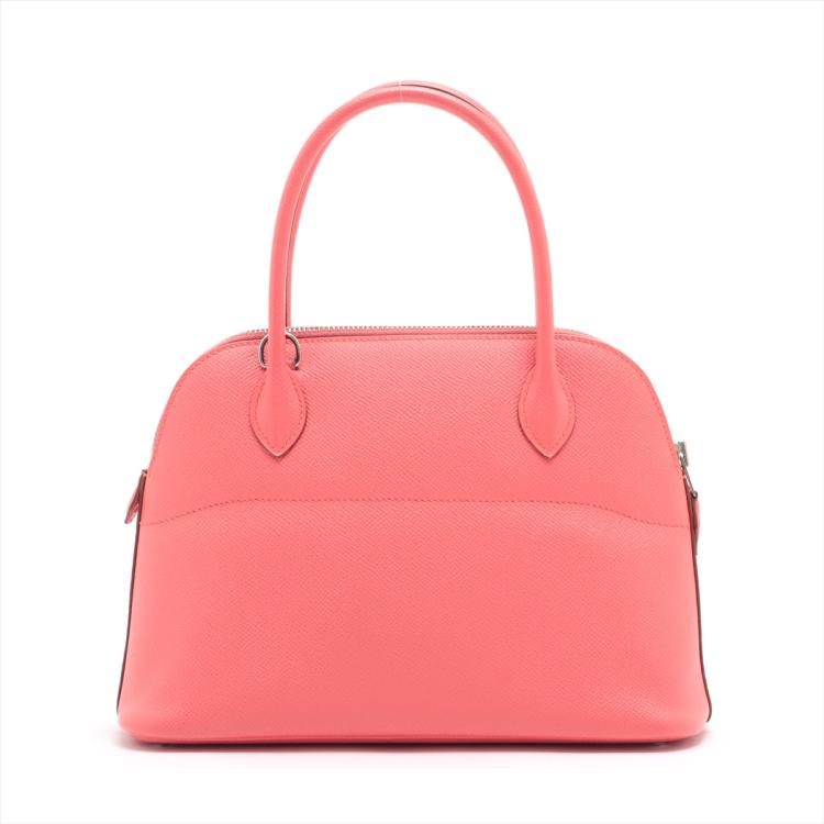 Hermes Bolide 27 in Veau Epsom in Flamingo colour (R in square, circa 2014). Featuring silver-toned hardware, rolled leather top handles. The top zipper opens to a matching leather lining interior with a patch pocket. Approximate dimensions: 26cm(L) x 18.5cm(H) x 9.5cm(D), 10.5cm handle drop and 45.5cm detachable strap drop. With Entrupy Certificate of Authenticity. (Pre-owned)