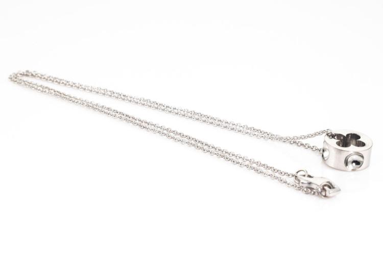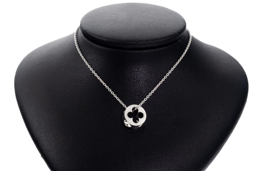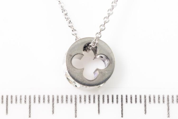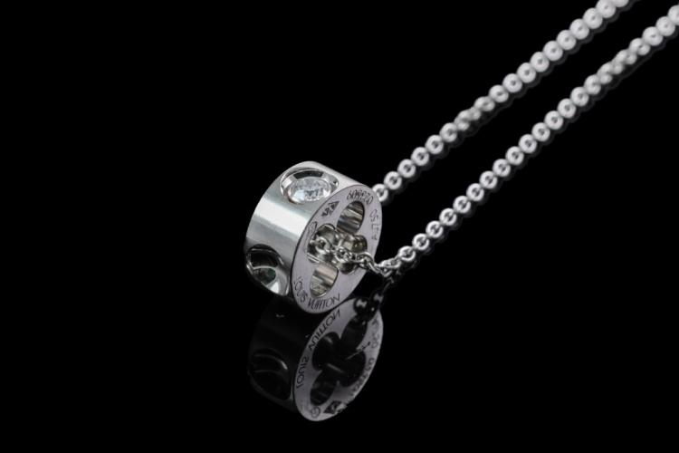 Louis Vuitton Empreinte Diamond pendant with one round natural Diamond of 0.10ct. Monogram flower motif size: 110mm x 50mm. 18ct white gold with 40cm 18ct white gold chain. Weight: 6.4g. (Pre-owned)