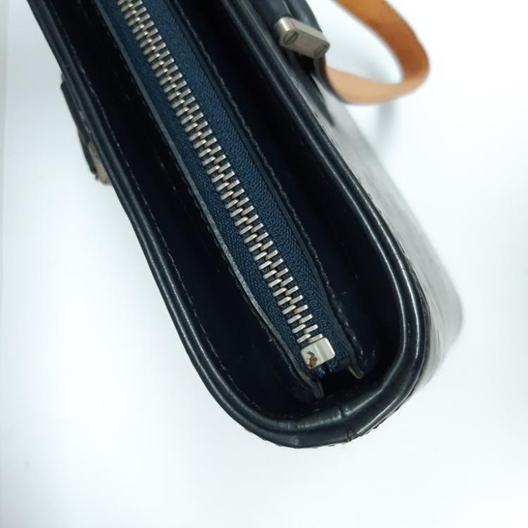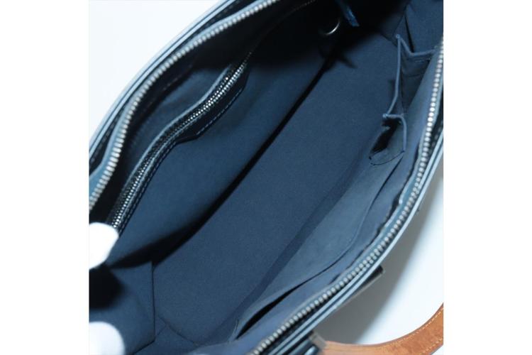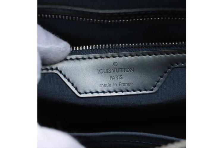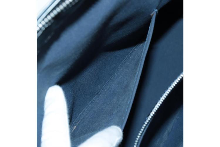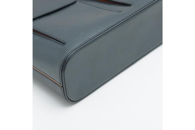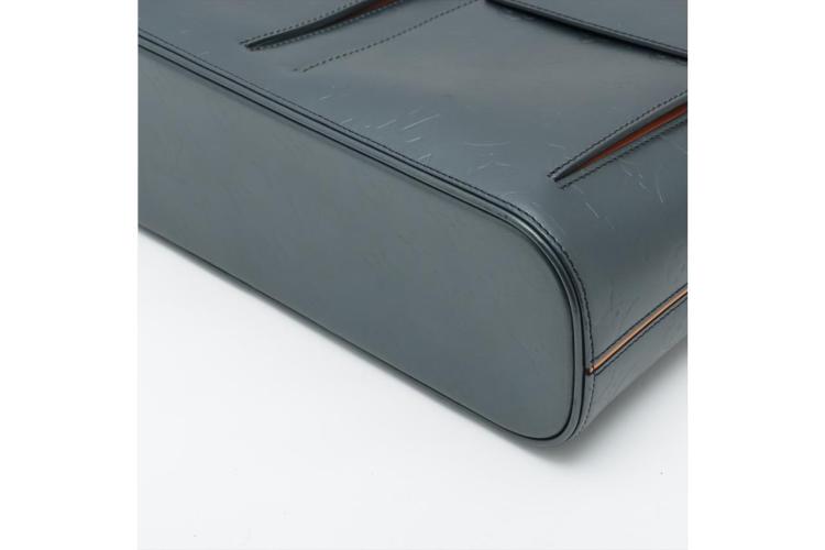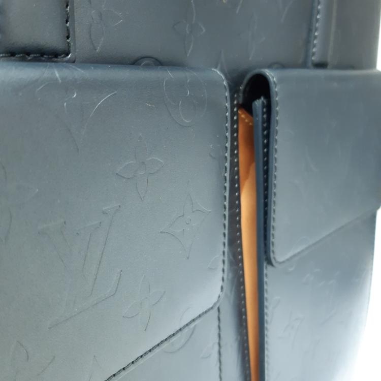 Louis Vuitton Wilwood tote in blue Monogram mat leather. Featuring silver-tone hardware, dual leather handles, 2 exterior pockets with flaps and magnetic button closures. The top with zipper closure opens to a blue canvas lining interior with zippered and patched pockets. Approximate dimensions: 36cm (L) x 10cm (H) x 31cm (D), and 23cm shoulder drop. With Entrupy Certificate of Authenticity. (Pre-owned)