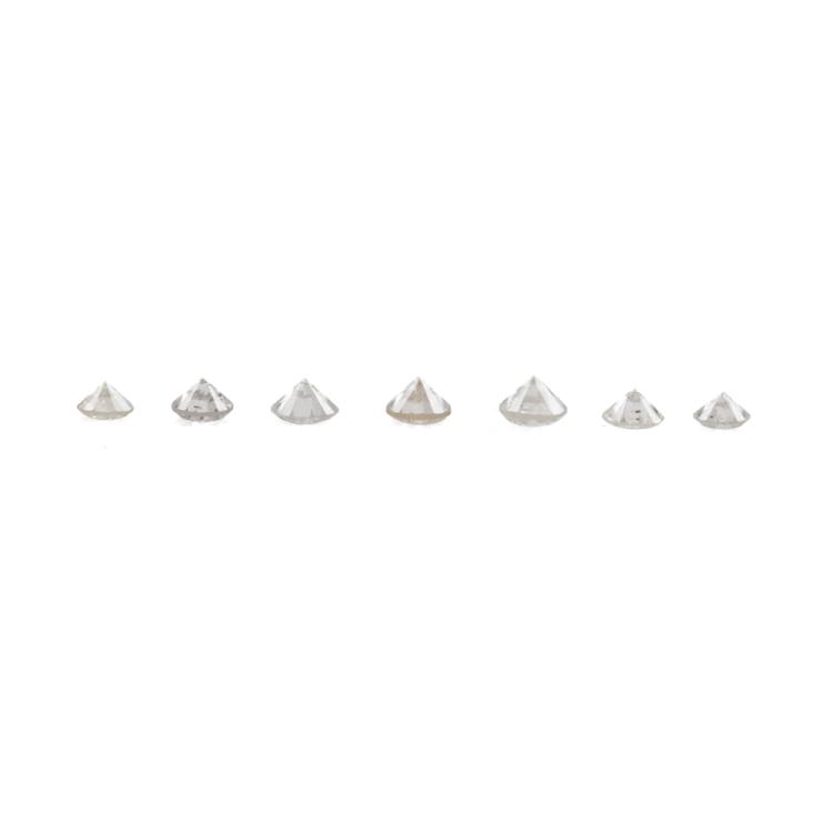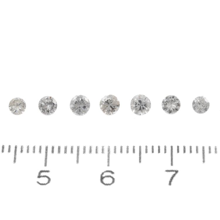 A loose parcel of 7 round brilliant cut natural Diamonds totalling 0.85ct (Estimated grading I-J P1-P2). Approximate size: 2.85mm - 3.41mm. (Pre-owned)