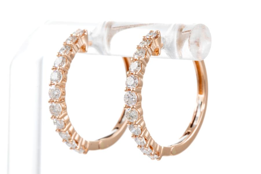 Diamond half hoop earrings with 22 round Natural Diamonds totalling 0.98ct (Estimated grading: H SI). 14ct rose gold. Weight: 3.2g. (New).