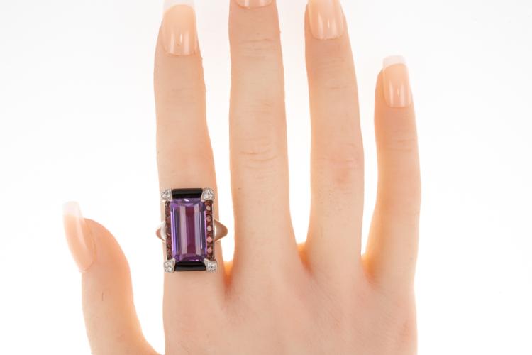 10.26ct Amethyst, Onyx and Diamond Ring