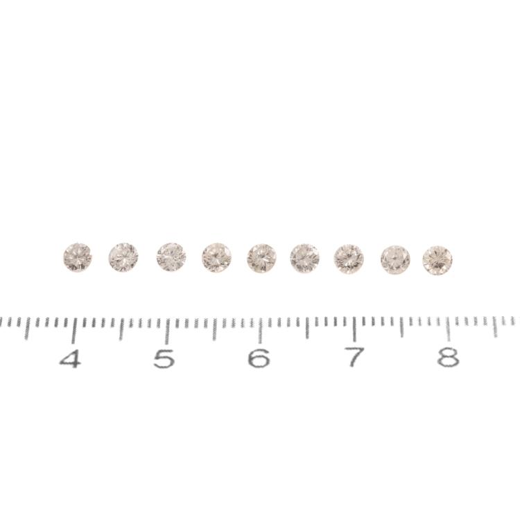 A loose parcel of 9 round brilliant cut natural Diamonds totalling 1.29ct (Estimated grading I-J SI-P2). Approximate size: 3.30mm. (Pre-owned)