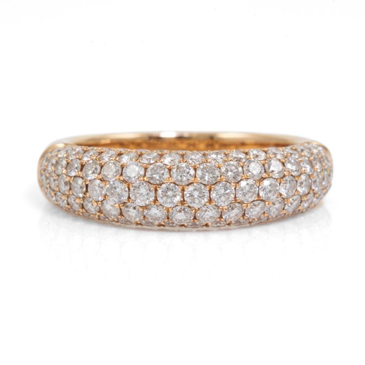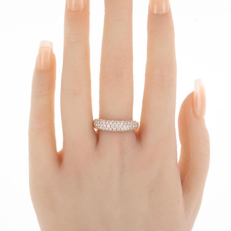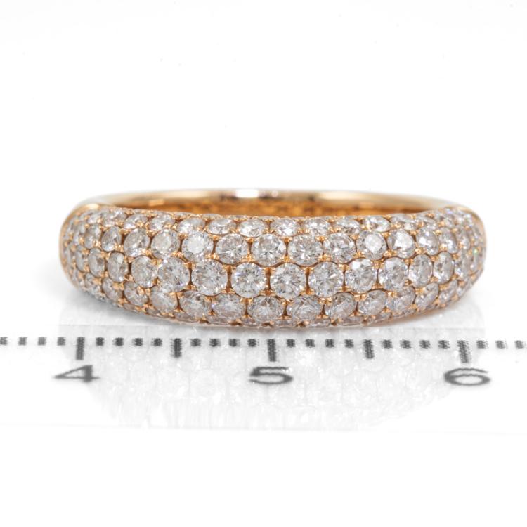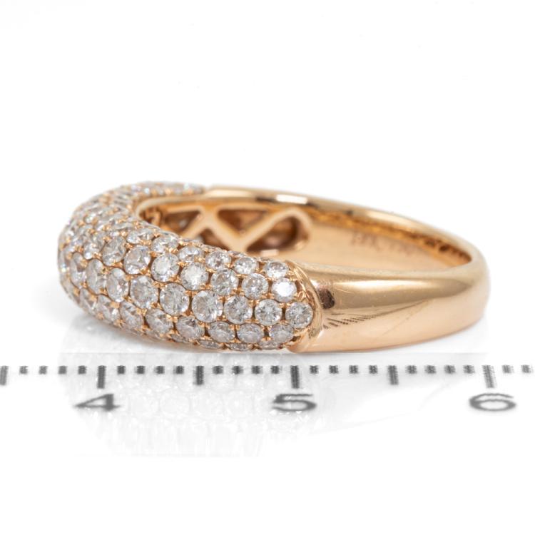 Diamond dress ring with round natural Diamonds totalling 1.79ct (Estimated grading: H SI). 18ct rose gold. Ring size O1/2 - ring resizing is not recommended. Band width: 3.0mm - 4.8mm. Weight: 5.3g. (Pre-owned)