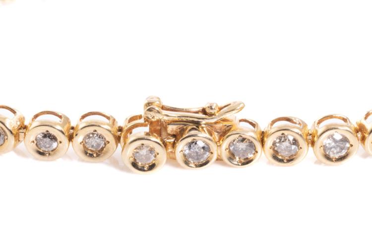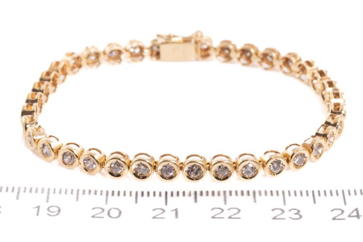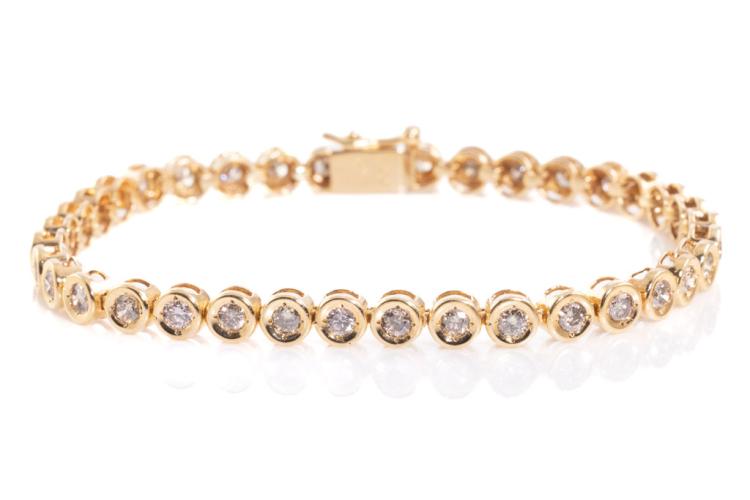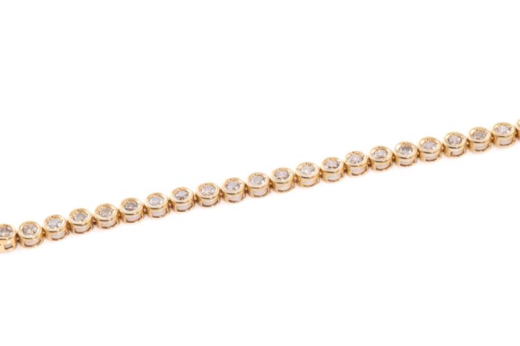Diamond tennis bracelet with Natural Diamonds totalling 1.80cts (Estimated grading: TTLB P1). 18ct yellow gold. Length: 18.3cm. Weight: 11g. (Pre-owned)