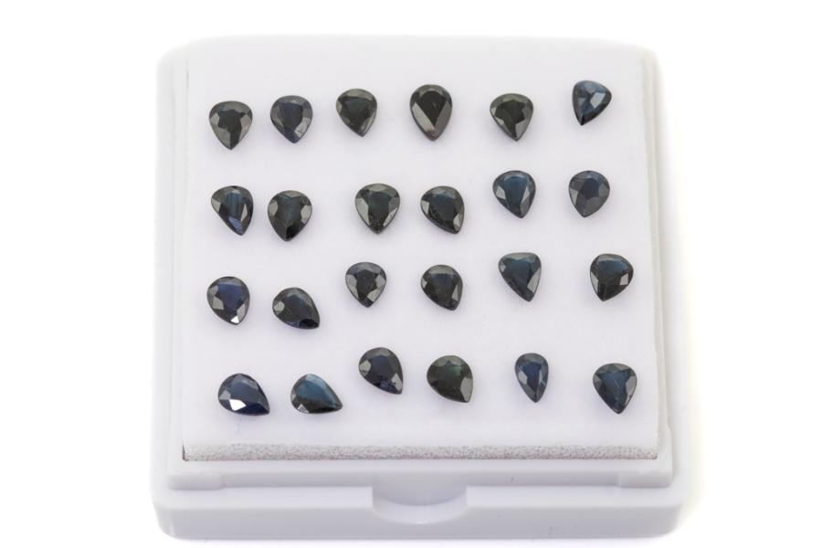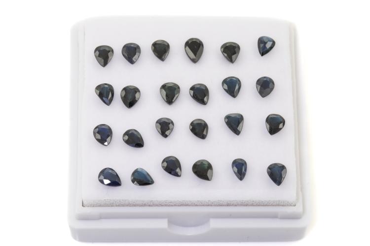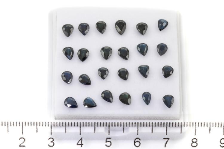A loose parcel of 24 pear shape blue Sapphire totalling 9.10cts. Measuring approximately 5 x 4mm. (As New)