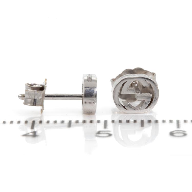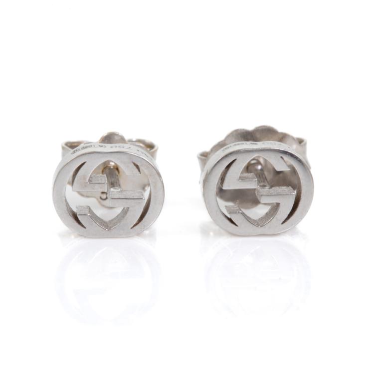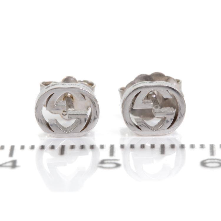Gucci Interlocking G earrings. 18ct white gold. Width: 6.5mm. Made In Italy. Weight: 1.5g. (Pre-owned)