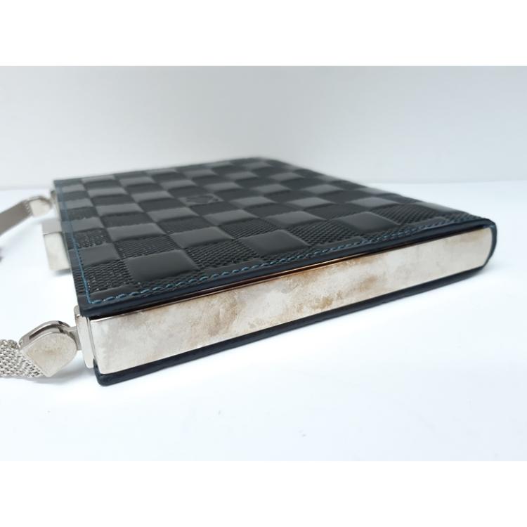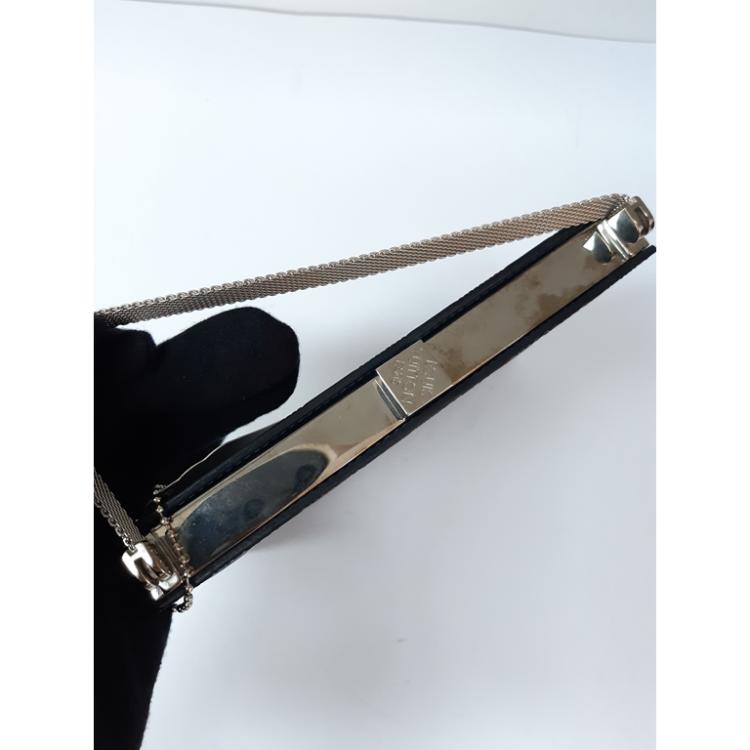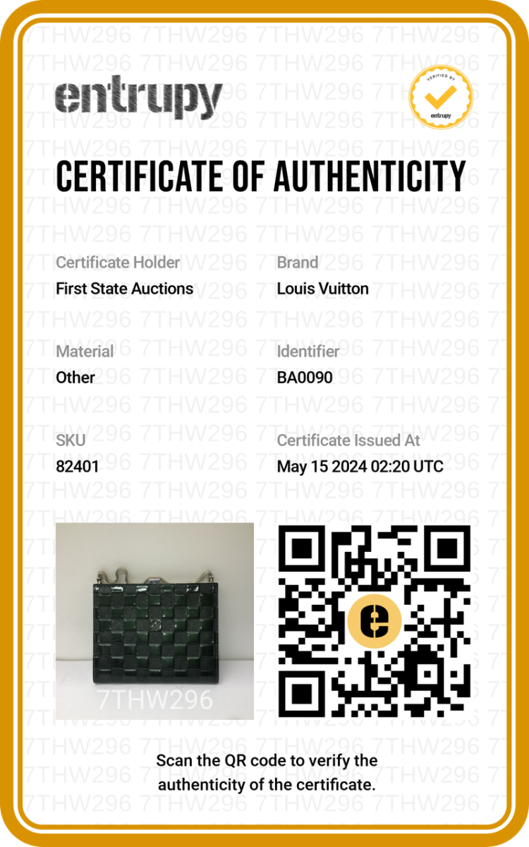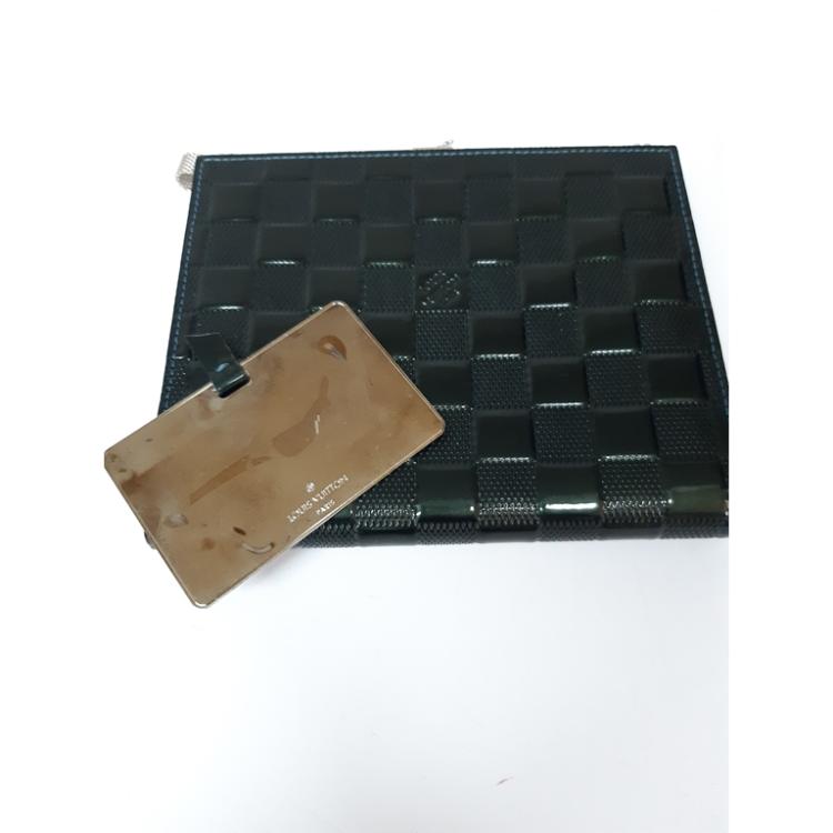 Louis Vuitton Ange PM in Green Damier Vernis patent leather. Featuring silver frame and a silver mesh handle. The top with push-lock closure opens to a green leather lining interior with patched pocket and a card slot. Approximate dimensions: 17cm(L) x 14cm(H) x 2cm(D), 8.5cm handle drop. Accompanied by a metal mirror and a LV dust bag. With Entrupy Certificate of Authenticity. (Pre-owned)