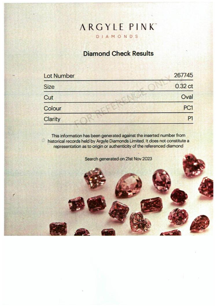 A loose oval shape Natural Argyle Diamond of 0.32ct (With copy of Argyle certificate #267745 graded as PC1 P1). (Pre-owned)