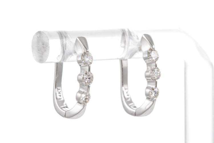 Diamond earrings with 6 round Diamonds totalling 0.37cts (Estimated grading: J SI). 14ct white gold. Weight: 2g. (New)