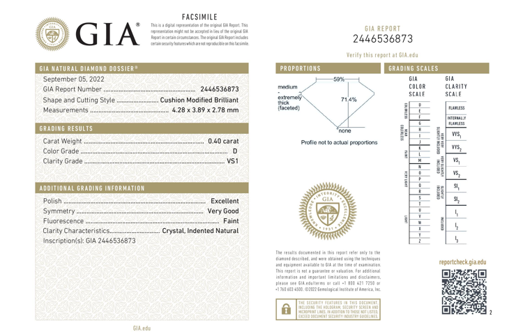 A loose cushion cut natural Diamond of 0.40ct (with GIA summary report of D VS1#2446536873). (New)
