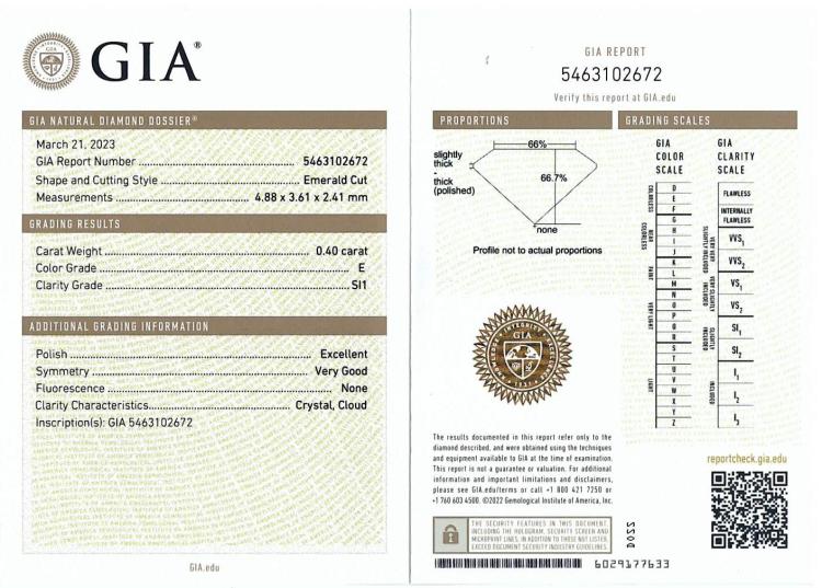 A loose emerald cut Natural Diamond of 0.40ct (with GIA report graded as E SI1 #5463102672