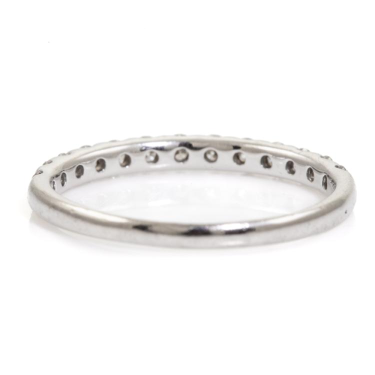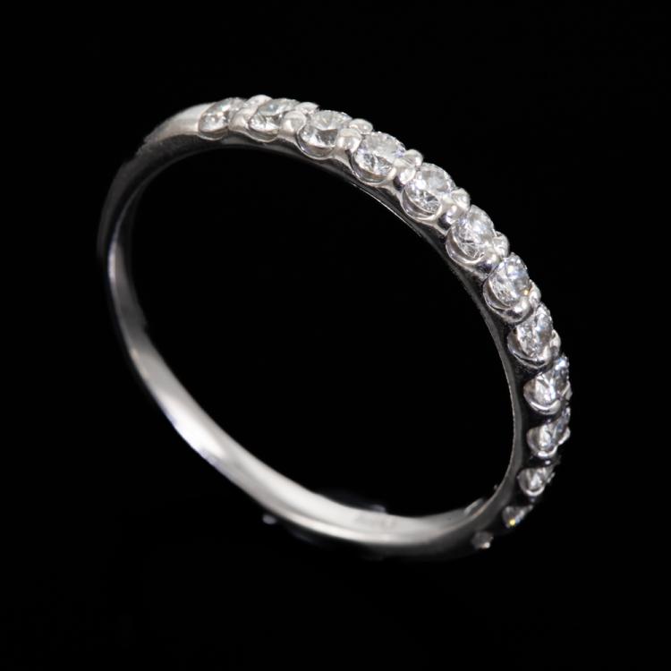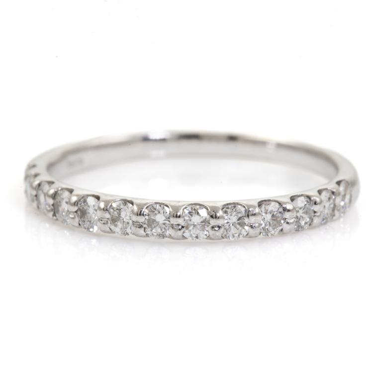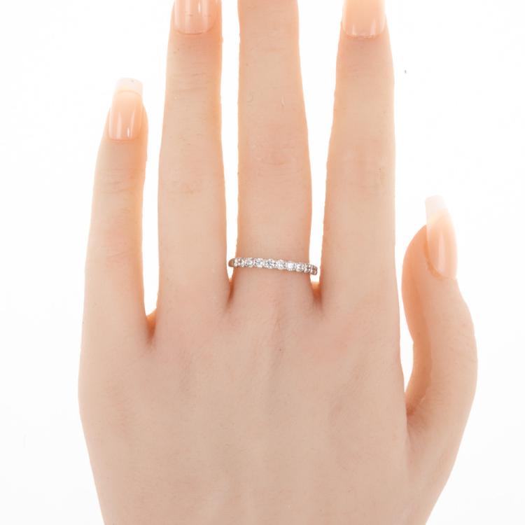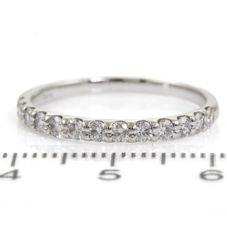 Diamond half eternity ring with round Natural Diamonds totalling 0.53cst (Estimated grading: H SI). Platinum - 900. Ring size P. Band width: 2.3mm - 1.8mm. Weight: 2.7g. (Pre-owned)