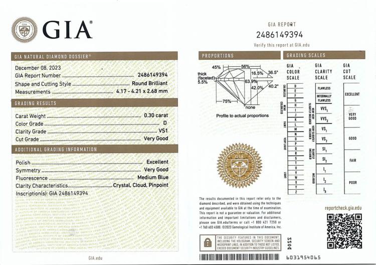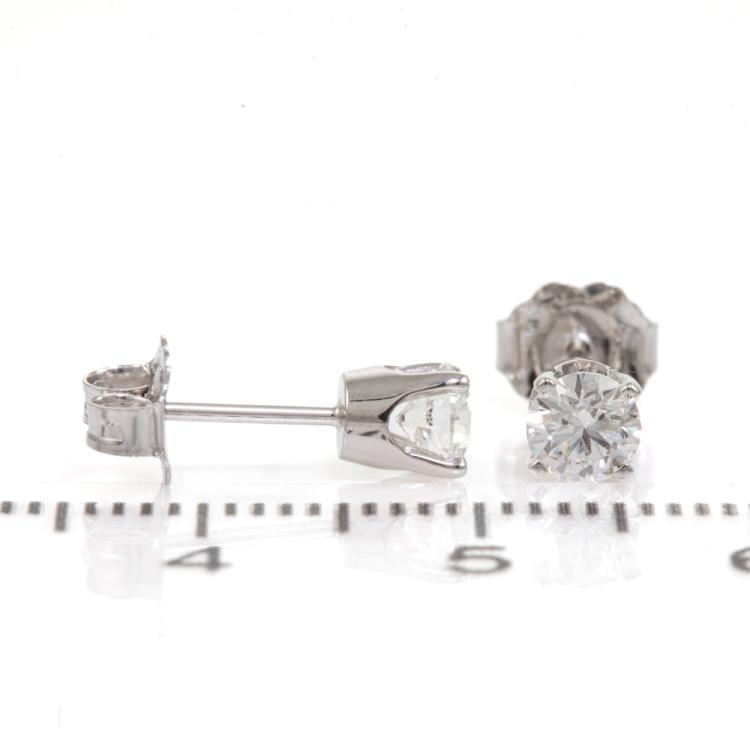 Diamond stud earrings with 2 round brilliant cut Natural Diamonds totalling 0.60cts (both with GIA Summary Reports graded as D VS1 #2486149394, 6485132304). 18ct white gold. Weight: 1.1g (New)